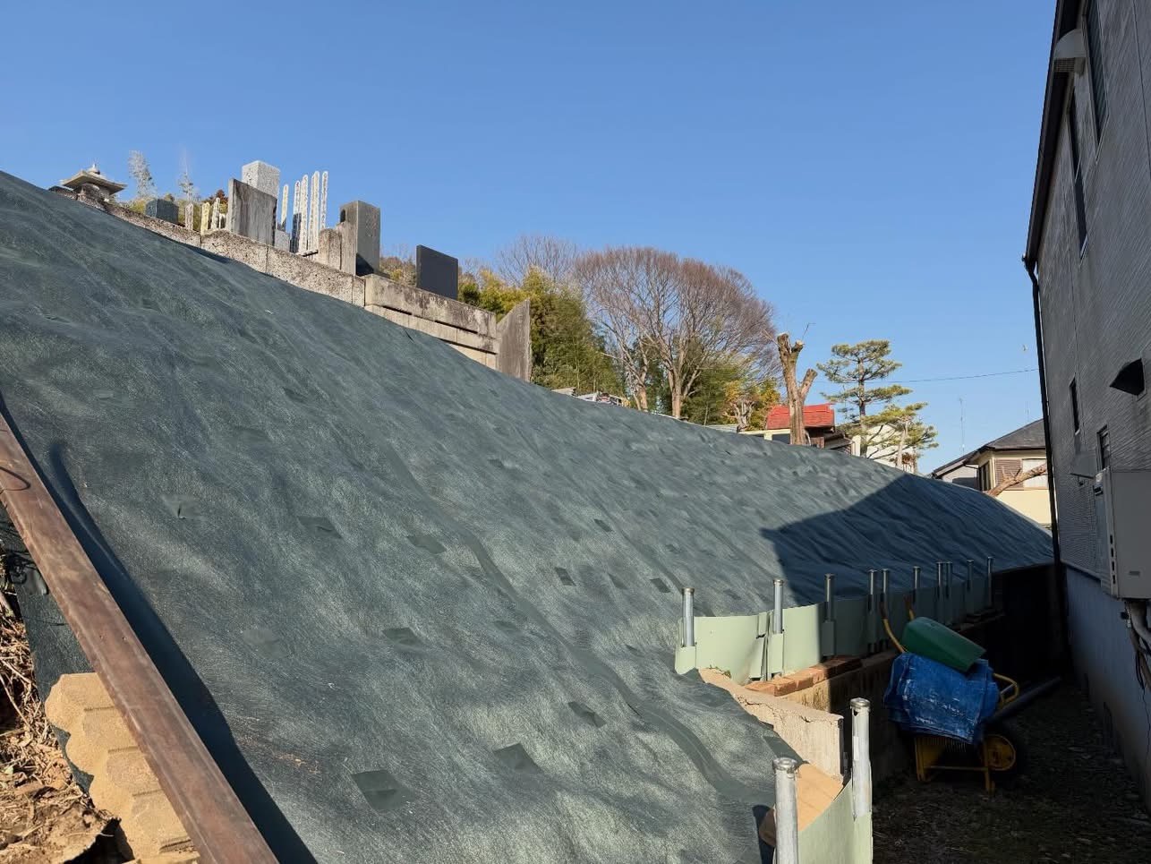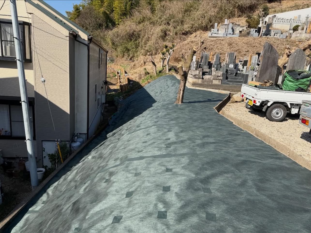 今回は、八王子市大林寺様で法面防草シート工事をさせて頂きました。